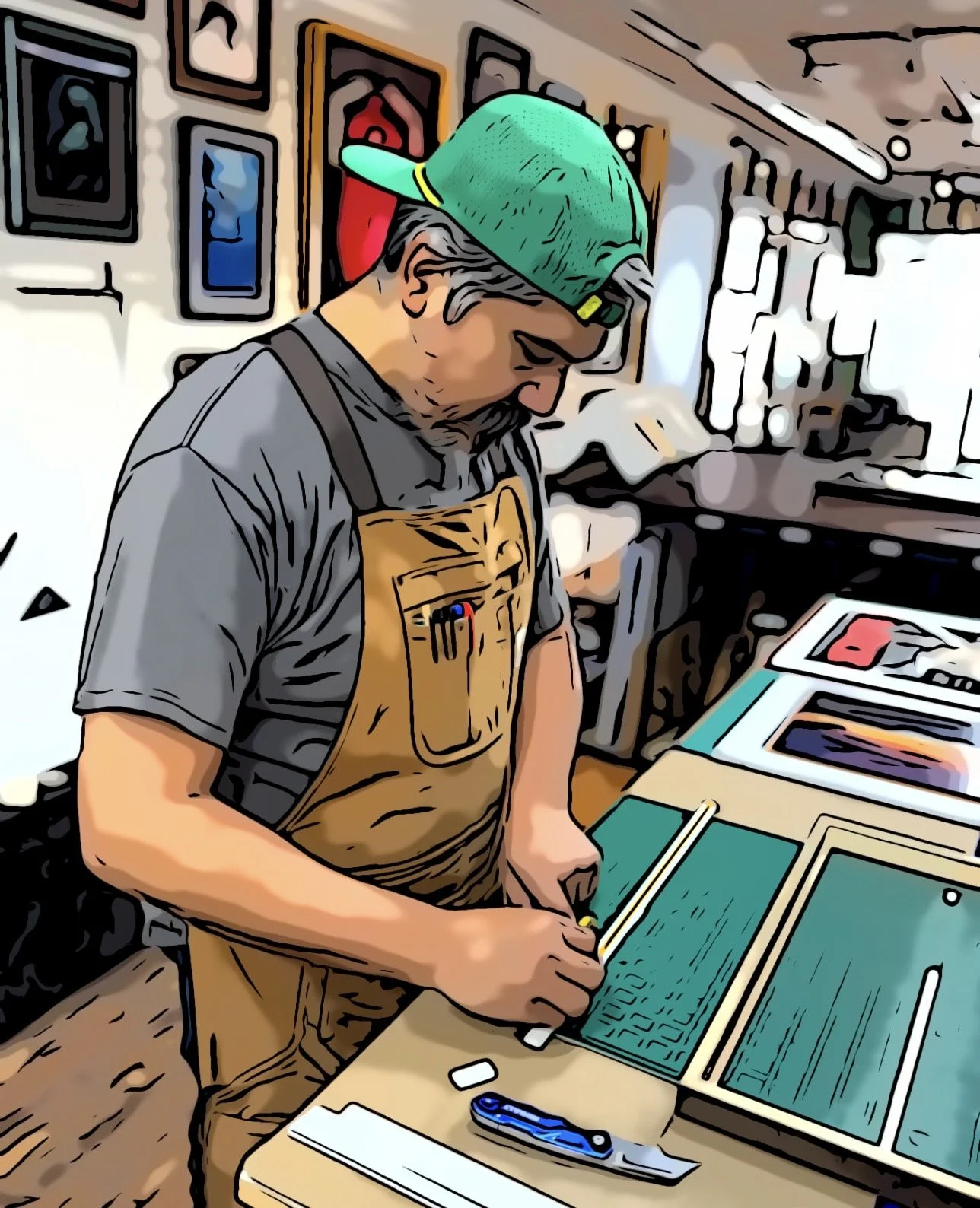 At District Frame & Art Co., Aaron specializes in precision mat cutting and operates the studio’s Valiani computerized cutter—one of the most advanced systems of its kind in El Paso. This allows him to execute highly detailed, custom layouts that go far beyond standard framing.